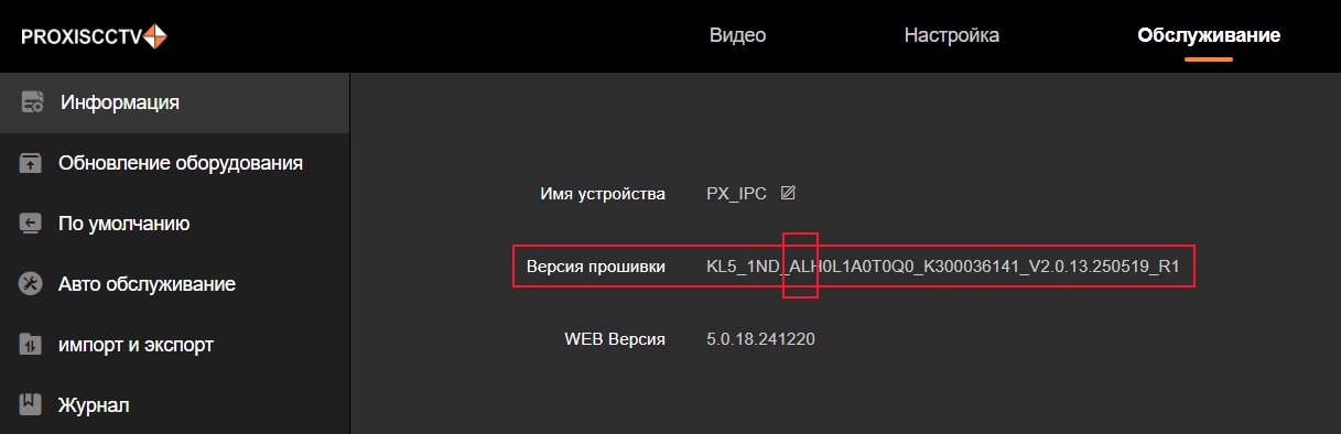 Если в названии текущей версии прошивки присутствуют символы "AL" и серийный номер устройства начинается с 68***, то обновление устройства возможно только в условиях сервисного центра.